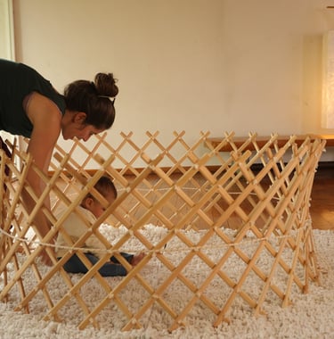 Somos una empresa franco-mexicana dedicada a crear corralitos para bebés que se transforman en casitas tipo yurta y yurtas para adultos, todas elaboradas de forma artesanal, con madera de pino y algodón natural, sin químicos añadidos.